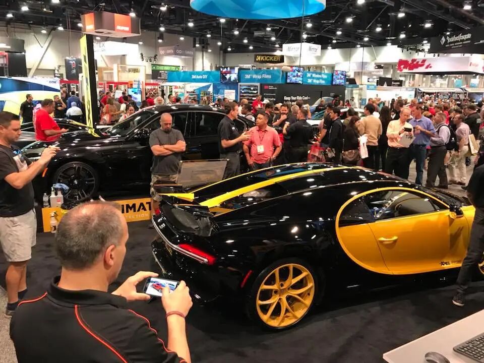 这辆黄黑配色的布加迪Chiron Hellbee外观非常地亮眼,它作为XPEL代表进行展出,可见它作为性能怪兽在人气上对于其他车辆的碾压。