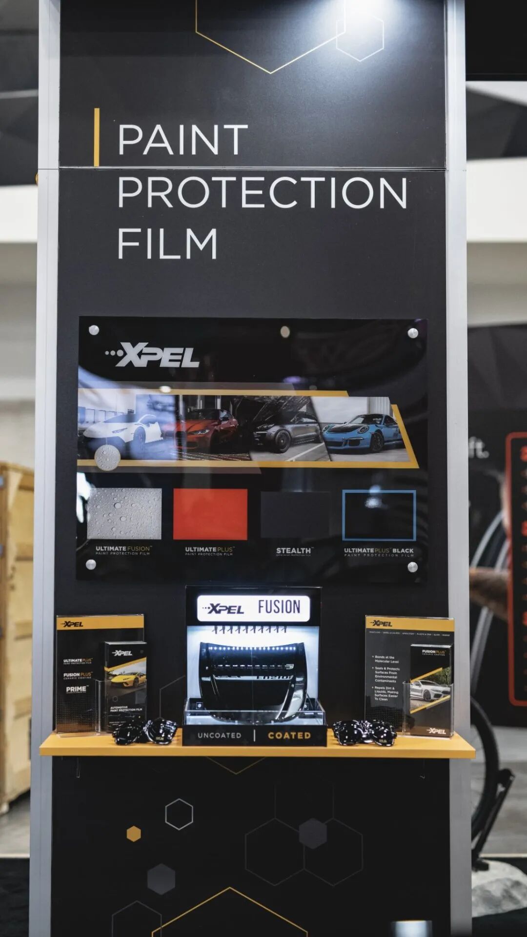 XPEL的展位依然保持了现代简约的设计风格,现场不仅有兰博基尼坐镇,更展现了我们保护膜产品的多样性,汽车漆面保护膜、安全隔热膜、建筑膜等。因为XPEL秉承着“保护一切所爱”的信念,所以你在现场还可以看到装贴了XPEL漆面保护膜的电动自行车。